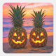 Pegatina Cuadrada Halloween Pineapple Jack-o-lanterns On a Beach