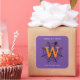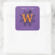 Halloween Spider Web Trick o Trate pegatinas cuadrados de Monograma con fondo morado. ¡Feliz Halloween! Celebra la noche más aterradora del año con este diseño inicial de telaraña, araña y monograma en negro, blanco y naranja. Con el texto "Truco o trato" que se puede cambiar a la cita deseada. Texto listo para el personalizar con su nombre e Inicial.