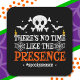 Este divertido diseño de Halloween Feliz es perfecto para una espeluznante temporada espeluznante para y para cualquiera que AME Halloween! ¡Ideal para un fiesta de disfraces de Halloween o para mostrar tu espíritu de Halloween todo el año! Características de 'No hay tiempo como la presencia' divertido chiste feliz de Halloween juego de palabras fantasma y lindo cráneo espeluznante y gráfico de cruces.