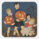 Pegatina Cuadrada Halloween vintage, niños con calabazas