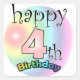 Pegatina Cuadrada Happy 4th Birthday (roze)