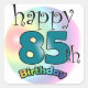 Gelukkige 85ste verjaardag. Voor iemand die vijfentachtig is geworden. Vrolijk ontwerp met regenboog kleuren.