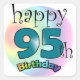 Gelukkige 95ste verjaardag. Voor iemand die vijfennegentig is geworden. Vrolijk ontwerp met regenboog kleuren.