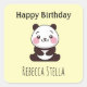 Pegatina Cuadrada Happy birthday cute panda bear yellow