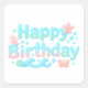 Pegatina Cuadrada Happy Birthday Glossy Ocean Pastel Text