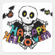 Pegatina Cuadrada Happy Halloween (Skeleton and Bats)