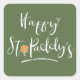 Un divertido pegatina cuadrado para el Día de San Patricio que presenta una tipografía elegante de la frase 'Happy St. Paddy's' en todos los colores de la bandera irlandesa; texto blanco decorado con un shamrock naranja en un fondo verde. Busque ID336 para ver otros productos con este diseño.