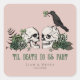 Estos elegantes pegatinas góticos de la plaza del boda irlandés St. Patrick's Day, "hasta la muerte nos diviertan", presentan ilustraciones con temas góticos e irlandeses a mano con tinta negra, exhibiendo cráneos de su marido y su esposa y un cuervo negro adornado con rosas verdes, hojas, bayas, flores silvestres y tréboles verdes. Elegante fondo rosa rubor. Personalice los datos de su boda. Todo el texto es editable.
