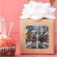 This festive design captures the joyful spirit of the holiday season, featuring an adorable dogs.Nestled in a winter wonderland, complete with a decorated Christmas tree, and beautifully wrapped presents. Snowflakes gently fall, adding a magical touch to the scene, while the vibrant colors of the holiday decorations create a warm and cheerful atmosphere.