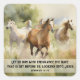 Inspiradora cita pegatina de Escrituras Cristianas representa una hermosa acuarela natural con caballos corriendo a través de un campo de flores. Presenta una porción de una Biblia motivadora Verse Hebrews 12 1-2, "Corremos con resistencia la carrera que se pone delante de nosotros, mirando a Jesús".