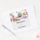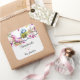 Hecho a mano con pegatinas de amor con una asombrosa fotografía del pequeño pájaro más lindo encaramado en una rama cubierta de flores rosas y hojas verdes. El pájaro tiene la cabeza azul y el cuerpo amarillo con una cara muy dulce. Adorable.