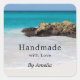 Pegatina Cuadrada Hecho a mano con amor Azure Ocean Sandy Beach Phot