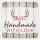 Pegatina Cuadrada Hecho a Mano con Amor Cuerno Floral Rústico en Mad