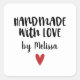 Pegatina Cuadrada Hecho a mano con amor personalizado