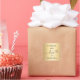 Un fondo falso de aspecto dorado, texto negro. Personaliza y agrega tu nombre. Con el texto: hecho a mano con amor, por + un corazón pequeño.