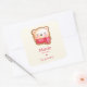 Pegatina Cuadrada Hecho con amor Cara de oso lindo en una bufanda ro