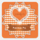 Pegatina Cuadrada Hecho con amor Gingham Naranja