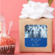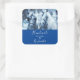 Hecho a mano con pegatinas de amor con una fotografía de un par de caballos enganchados juntos. Un día nevado y un filtro azul crean una escena mágica.