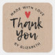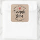 Pegatina Cuadrada Hecho con amor Rústico Kraft Paper Gracias