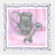 Una taza de herencia se sienta al lado de un bebé rattle en este trabajo de Tara Friel. Una figura de un oso de peluche está tallada en el extremo del ganado, y intrincados motivos florales adornan los lados del vaso. ¡Una gran pieza, pon esto en tu pared hoy!