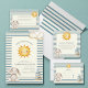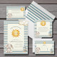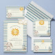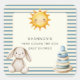 Make your baby shower favors extra special with this delightful 'Here Comes the Son' sticker. This charming design showcases a sweet watercolor bunny, a cheerful sun, and a colorful stacking toy, all framed by a classic blue and cream stripe pattern. It's a perfect way to tie together your baby shower theme and express the joy of welcoming a new baby boy. Use these stickers to seal envelopes, adorn gift bags, or decorate party favors for a truly memorable touch for Shannon's baby shower.