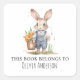 Pegatina Cuadrada Hermosa conejita con flores Pertenece a este libro