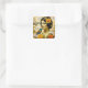 Pegatina Cuadrada Hermosa mujer de época con pájaros y flores
