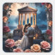 Pegatina Cuadrada Hermosa novia y novio de pie junto al mar