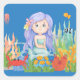 Pegatina Cuadrada Hermosa sirena PURPLE PELO jugando en el mar