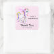 Negocios "gracias por tu pedido" pegatinas con una imagen de un unicornio con grandes ojos azules, alas rosadas y una forma de arco iris y cola. Kawaii lindo.