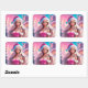 Pegatina Cuadrada Hermoso Chica de Navidades rosados 01