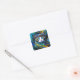 Pegatina Cuadrada Hermoso gato místico en blues y goles