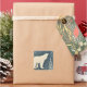 Un divertido diseño artístico con un majestuoso oso Oso Polar mirando hacia el cielo nocturno ártico, mientras grandes copos de nieve blancos y esponjosos caen a su alrededor.