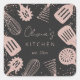 Pegatina Cuadrada Herramientas de cocina Rosa Purpurina de oro perso