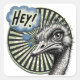 A cheerful shout-out in classic comic style. This sticker features an ostrich saying "Hey!" from a bold thought bubble, blending friendly bird humor with graphic pop art vibes. DSE Graphics | Art with Attitude.
