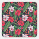 Pegatina Cuadrada hibiscos rojos, orquídeas, acuarela tropical.