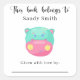 Pegatina Cuadrada Hippo - Este libro pertenece a con mensaje