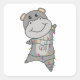 Pegatina Cuadrada Hippo Feliz Navidad Animales de Invierno Hippos