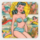 Pegatina Cuadrada Historietas de verano del Chica Retro Bikini