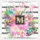 Pegatina Cuadrada hojas florales tropicales y franjas flamencas