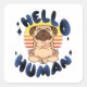 Diseño de perros lindo con un perro encantador meditando en una pose de yoga con la frase "Hola humano". Una combinación perfecta para cada amante de los perros y propietario de un mascota. Gran idea de regalo para adultos y para niños.