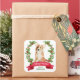En estos pegatinas por correspondencia de Holiday, un retrato acuarela de un hermoso perro Corgi está rodeado por una corona de bayas rojas. En la parte inferior hay un cartel rojo con el saludo de sus Navidades personalizados, y su firma está en verde debajo.