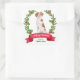 En estos pegatinas por correspondencia de Holiday, un retrato de un perro británico rojo y blanco está rodeado por una corona de moras rojas. En la parte inferior hay un cartel rojo con el saludo de sus Navidades personalizados, y su firma está en verde debajo.