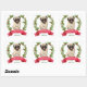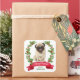 En estos pegatinas por correspondencia de Holiday, un retrato de un adorable perro Pug está rodeado por una corona de moras rojas. En la parte inferior hay un cartel rojo con el saludo de sus Navidades personalizados, y su firma está en verde debajo.