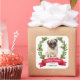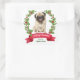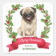Pegatina Cuadrada Holly Banner Pug Dog Navidades