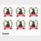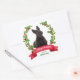 En estos pegatinas por correspondencia de Holiday, un retrato de un adorable territorio escocés negro está rodeado por una corona de moras rojas. En la parte inferior hay un cartel rojo con el saludo de sus Navidades personalizados, y su firma está en verde debajo.