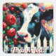 Pegatina Cuadrada Holstein Cow Picket Fence Red Roses Black Red