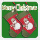 Pegatina Cuadrada Hombre de nieve sobre Navidades se alza sobre verd