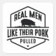 Pegatina Cuadrada Hombres de verdad como su cerdo sacrificado