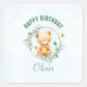 Pegatina Cuadrada Honey Bear Cute Greenery Boy Feliz cumpleaños